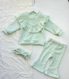 Presentamos el Conjunto Margoth, un encantador conjunto de beba que incluye tres piezas para que tu pequeña brille en cualquier ocasión. ✨